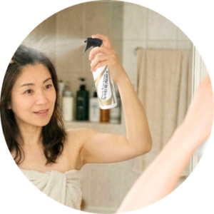 タオルドライ後、清潔になった頭皮にスカルプローションをスプレーして、マッサージしながらなじませます。