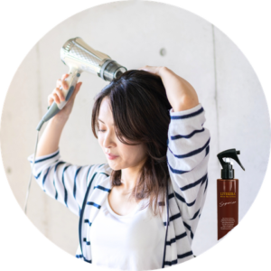 ドライヤー前に髪の内側からケアできる補修アイテムをなじませておくことで、熱から髪を守りながらツヤと強さを与えます。